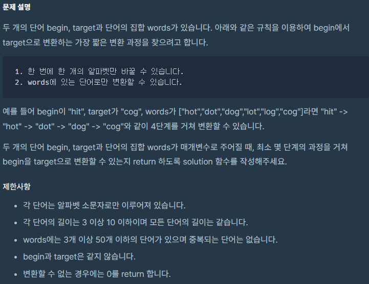 begin부터 시작해서 words_dict의 word를 하나씩 꺼내서 bfs 진행